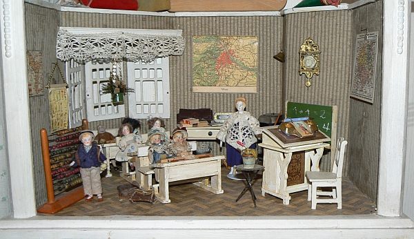 A doll's house is miniature version of a real home. Doll's house rooms are not a complete house but a part. Well known are doll's kitchens. Another possiblity are school rooms, bath rooms, etc. Old doll's house rooms are as well as doll's houses popular but rare collectibles. It is for every avid collector a real challenge to furnish them in an authentic way.