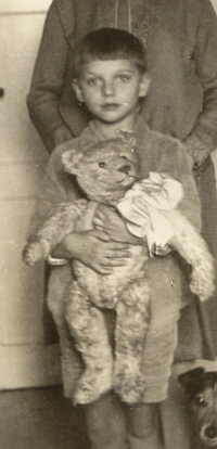 A boy with his Steiff-teddy (picture 1920s, teddy from about 1910). Ein Junge mit seinem Steiff-Teddy (Foto 1920er, Teddy um 1910). |