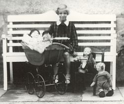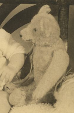 The teddy-craze started in the first decade of the 20th century. Next to the Steiff company many others also started producing them. The teddies were a wonderful addition as a toy for boys. Finally boys had some kind of "doll" they could cuddle and hold. Of course also many girls had their teddys but they also had their dolls to play with, what was considered inappropriate for a boy.