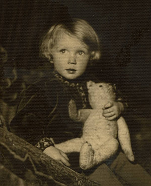 A little child with a teddy of unknown origin (1920s?). Ein kleines Kind mit Teddy unbekannter Herkunft (1920er?). |