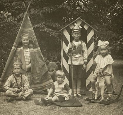Kinder mit ihrem Spielzeug im Jahre 1925.